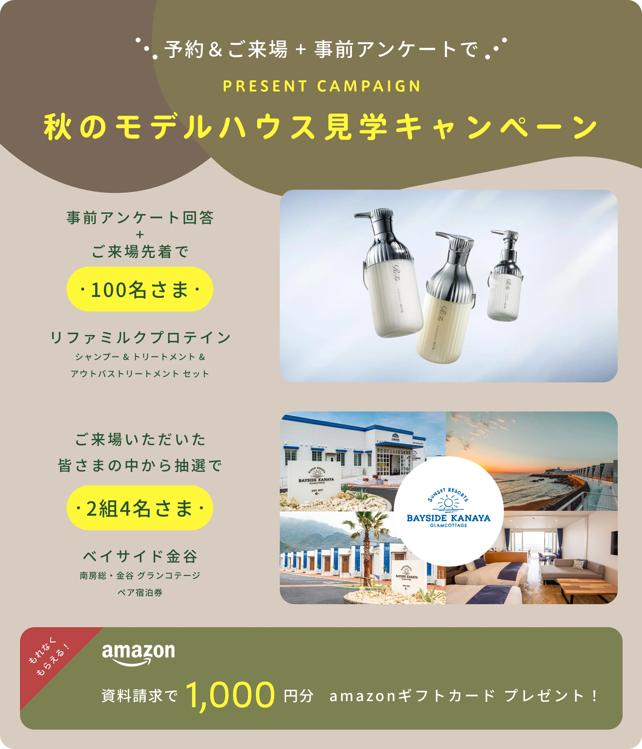 資料請求や来場予約などでもらえるプレゼントキャンペーン実施中です。